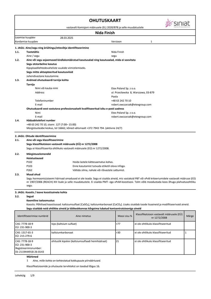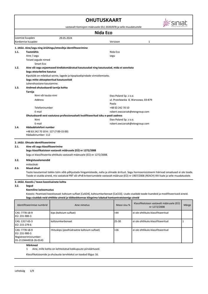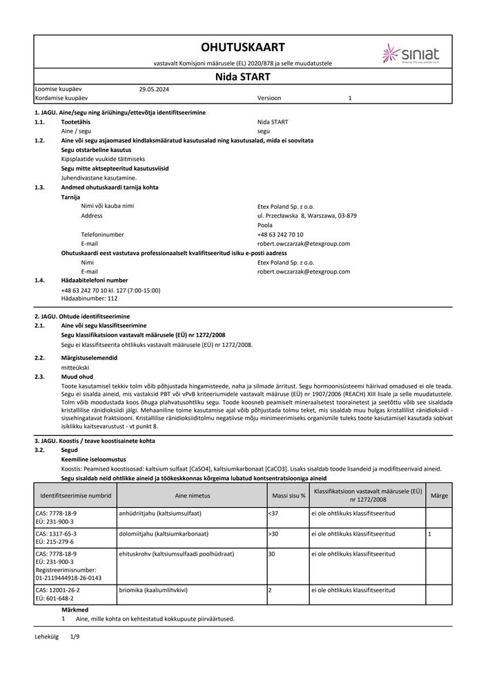 Siin leiad kõik vajalikud Siniat tehnilised dokumendid.