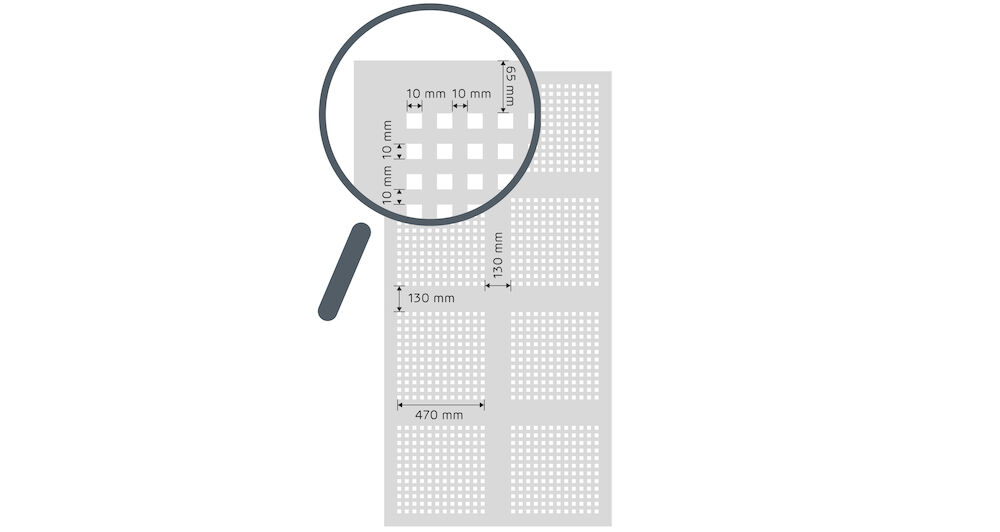 Ruudukujulise perforatsiooniga mürasummutav kips-kartongplaat vuukideta plaatkatetele, moodulsüsteem, 8 välja plaadi kogupinnal, kasutamiseks eelkõige suure kubatuuriga ja kõrgete akustilise mugavuse nõuetega ruumides. Summutab ideaalselt inimhäälest tulenevat müra, vähendades samaaegselt järelkõla – heli põrkumiset. Saadaval on valge akustiline fliis.