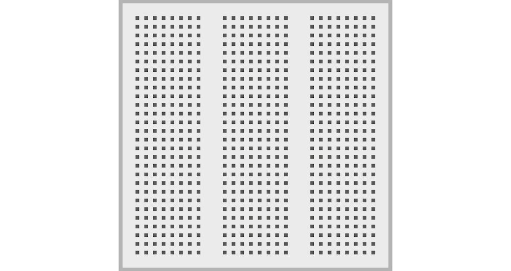 Moodulsüsteemis (kolm välja plaadi pinnal) ruudukujulise perforatsiooniga moodul kips-kartongplaat. Kõrge helisummutuse tegur, perforatsiooni unikaalne muster ja paigaldamise hõlpsus. Viimistletud spetsiaalse, plaati ultraviolettkiirguse eest kaitsva, valge värviga. Rulliga värvimise võimalus. Saadaval on valge või must akustiline fliis. Võimalik tellida Nida Aku Decor kattega (teras, kask, tamm, kastan) konstruktsiooni T-24 või T-15 alla rihvatud servaga plaati.