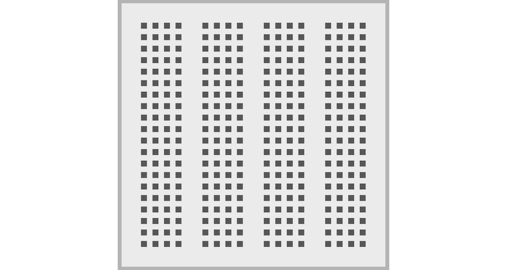 Moodulsüsteemis (neli välja plaadi pinnal) ruudukujulise perforatsiooniga moodul kips-kartongplaat. Kõrge helisummutuse tegur, perforatsiooni unikaalne muster ja paigaldamise hõlpsus. Viimistletud spetsiaalse plaati ultraviolettkiirguse eest kaitsva valge värviga. Rulliga värvimise võimalus. Saadaval on valge või must akustiline fliis. Esineb Nida Aku Decor kattega (teras, kask, tamm, kastan) konstruktsiooni T-24 või T-15 alla rihvatud servaga plaadi tellimise võimalus.